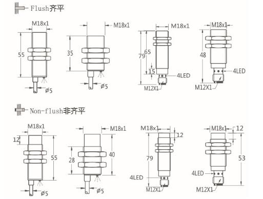 Thread size / 螺紋尺寸:    M18屏蔽式  /  M18非屏蔽式